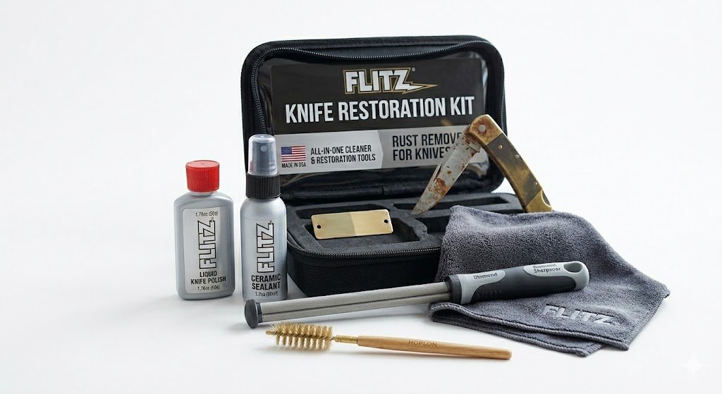 Featured Maintenance Kit: For the serious enthusiast, the Flitz Knife Restoration Kit provides everything you need to take a blade from “junk drawer” status to razor-sharp and rust-free.